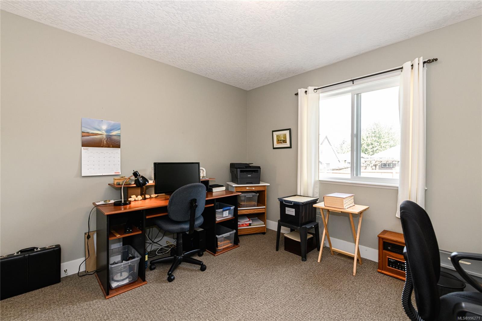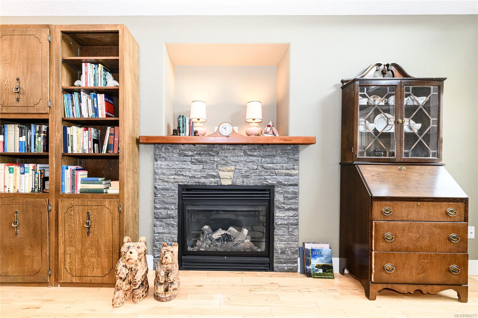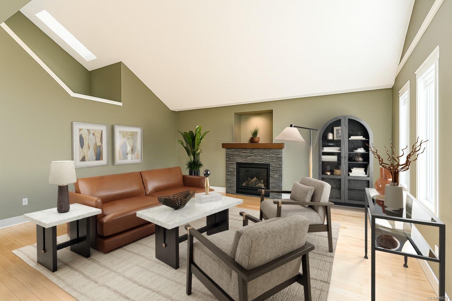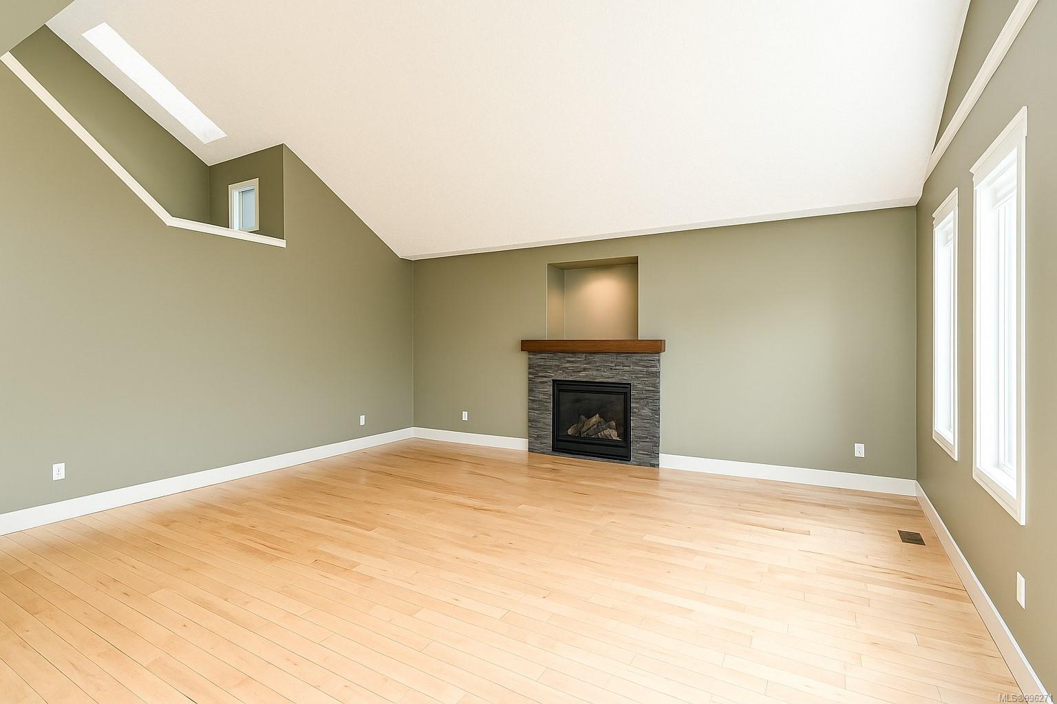 Step into the open-concept living space, where vaulted ceilings and an abundance of natural light create a warm and airy atmosphere. A cozy gas fireplace adds charm and comfort, while hardwood floors flow throughout. The kitchen is both functional and family-friendly with roughed in central vacuum (including a kitchen sweeper) and direct access to the backyard patio—perfect for entertaining. The home offers ample storage, including under-stair space and a clean, accessible crawl space. A high-efficiency furnace, heat pump, thermal windows, and utility sink in the double garage ensure the home is both energy-efficient and practical.