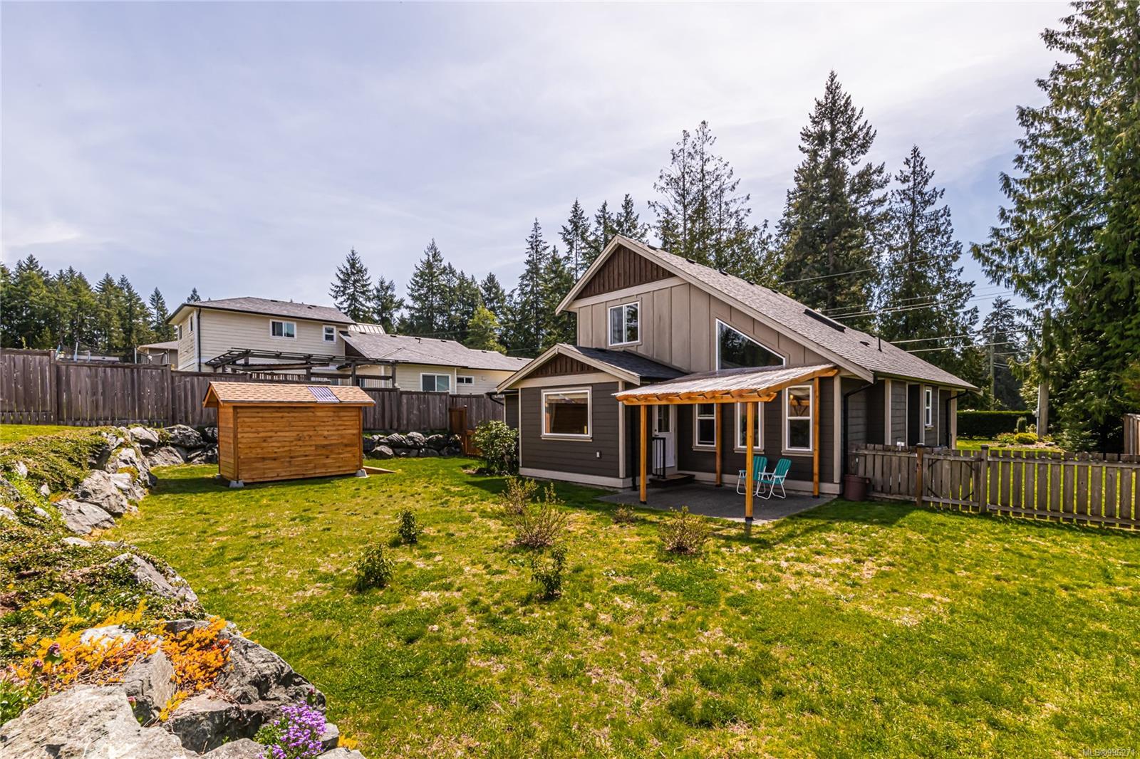 Outside, the fully fenced and landscaped backyard features terraced levels, a new tool/toy shed, RV parking, a large driveway, and a pergoda-covered patio with natural gas hookups—ideal for summer BBQs and gatherings.